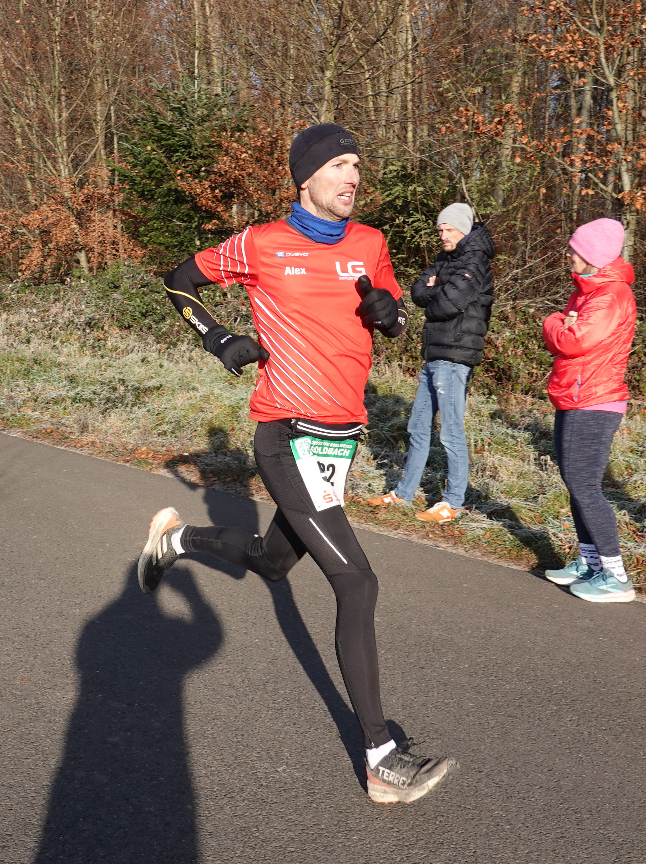 Minus 7 Grad beim Startschuss! Zwar schien die Sonne, aber richtig warm wurde es den Laufhelden eher nicht. Außer man war so schnell wie Alex unterwegs, der bei dieser Kälte bestens zurecht kam und sogar eine neue persönliche Goldbach-Bestzeit von 40:44 Minuten aufstellen konnte. Sieg in der M40 inklusive. Glückwunsch, Alex! Thomas brach nach 2 Kilometern den Lauf ab, konnte aber schöne Fotos für seine Reportage schießen.